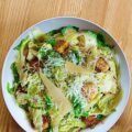 Fresh Romanian lettuce , Caesar sauce, Parmesan cheese, and toasted bread